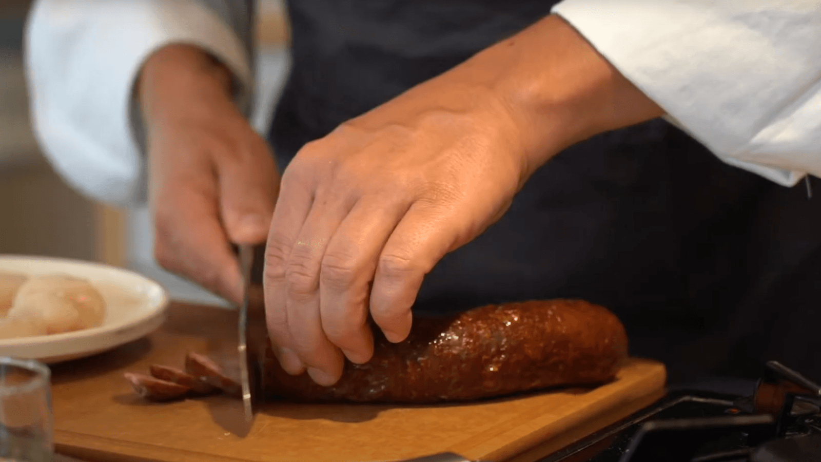 Embossée dans un boyau naturel de porc, elle est fermée à une extrémité par une ficelle en fibre naturelle et à l’autre extrémité par une cheville de bois : encore une signature qui la rend reconnaissable entre toutes. Le moelleux de sa chair vient du grain de hachage très épais.