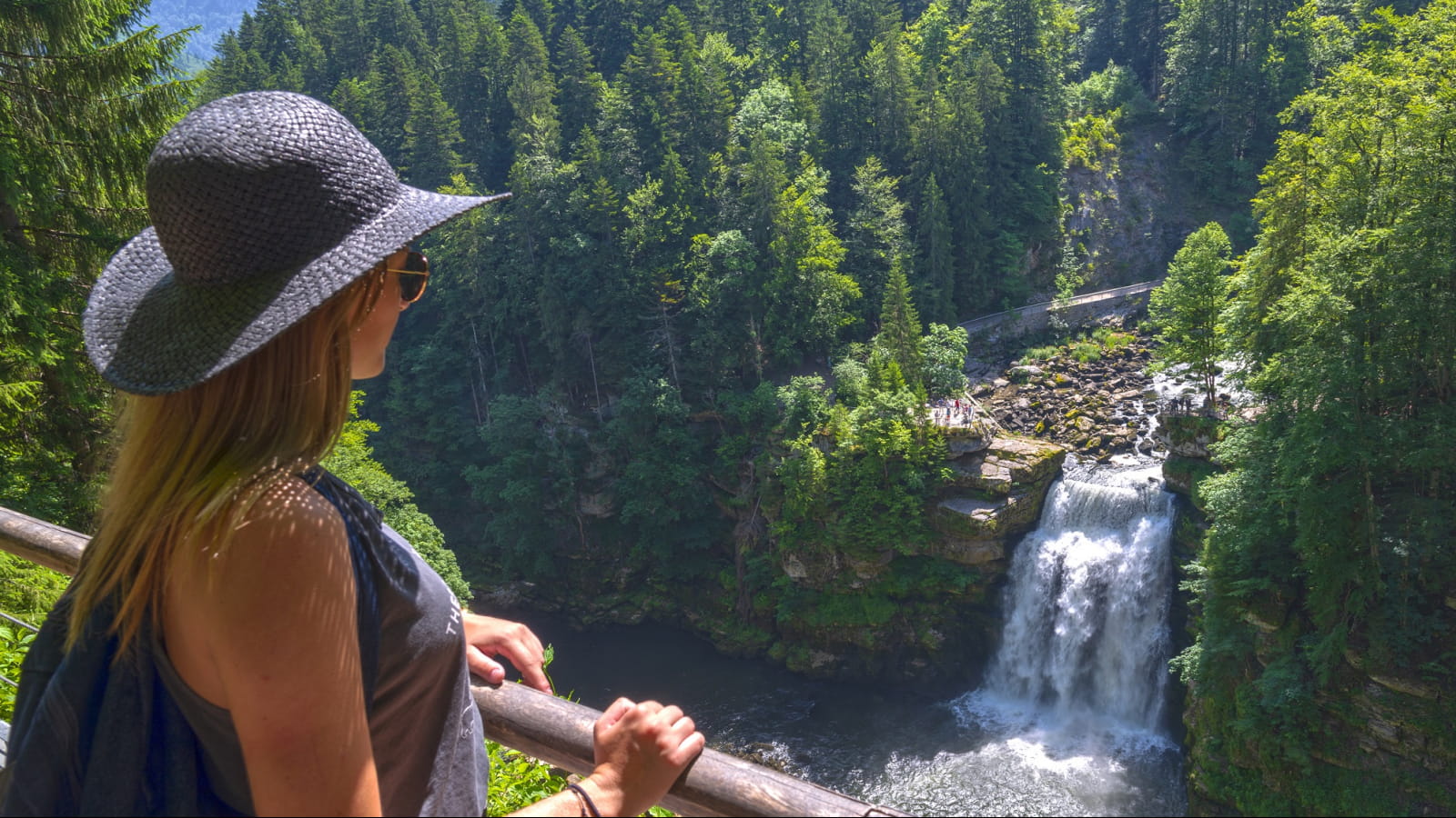 Ne sachant lequel des deux pays choisir, elle endosse la double-nationalité sur son site le plus impressionnant : les bassins et le saut du Doubs.