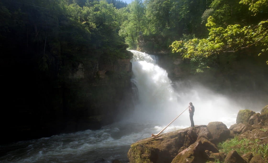 Le Doubs est mythique pour son cours changeant, indécis, mais aussi pour son parcours. En amont de Villers-le-Lac et sur 170 km, la rivière s'improvise douaniére et joue à saute-frontière entre Suisse et France, jusqu'à sa chute.
