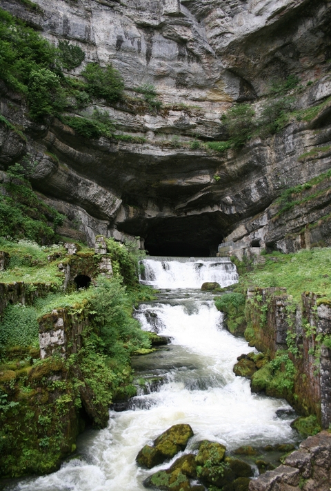 La source de la Loue jaillit d'un porche rocheux à Ouhans.