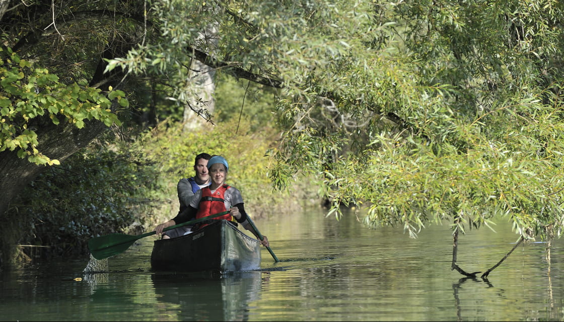 Les canoës se la coulent douce sur le Doubs tandis que les vélos se laissent rouler le long de l'Eurovélo 6. Ce grand itinéraire suit la vallée du Doubs de bout en bout, du Jura jusqu'au territoire de Belfort pour relier l'Atlantique à la Mer Noire.