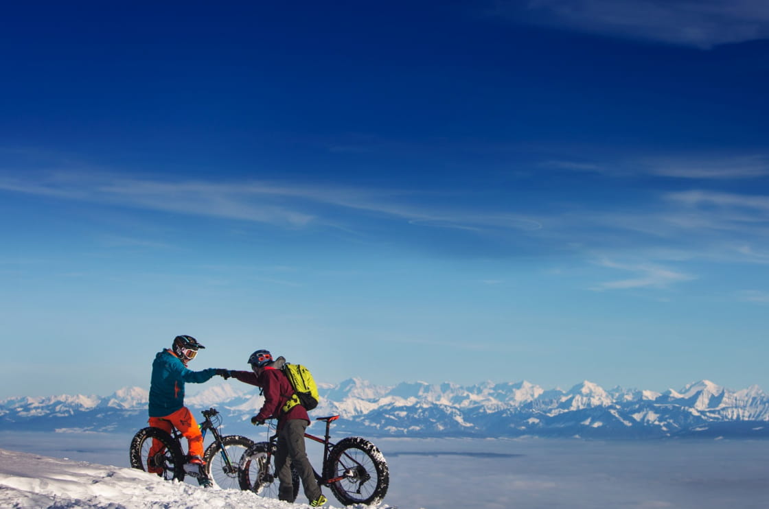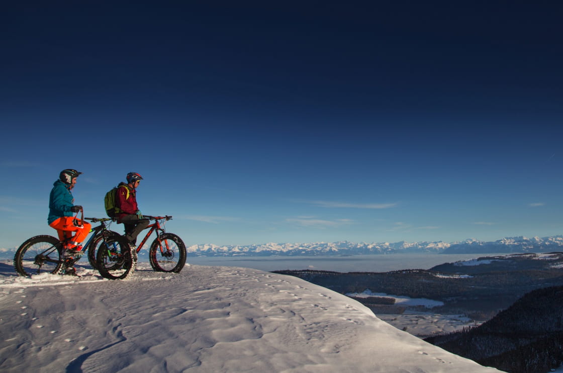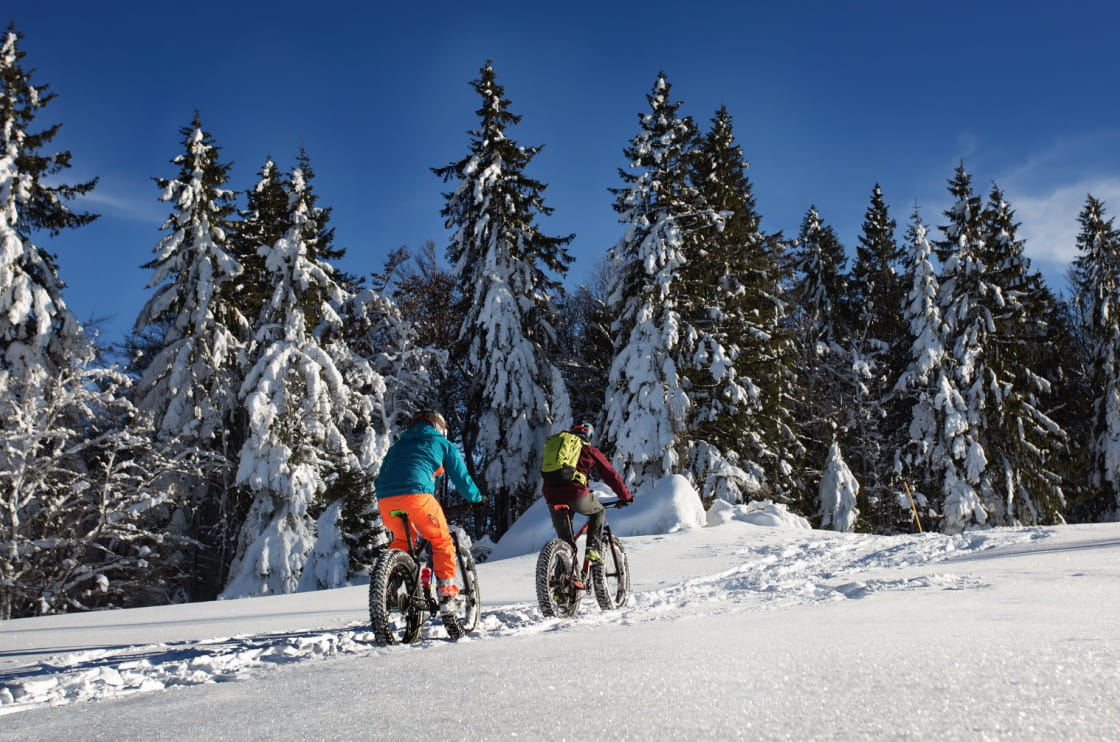 Laissez le soin à l'école VTT MCF Horizons Jura de vous emmèner en Fat Bike sur plus beaux parcours neige à Métabief et alentours. Une initiation sans pareil au VTT en format hivernal.
