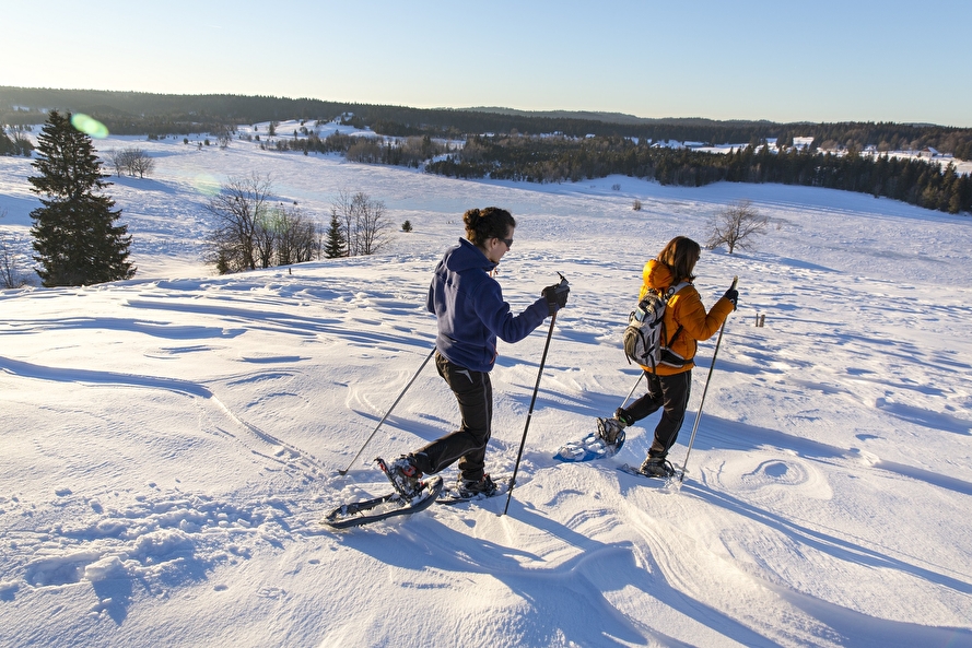 Il suffit de traverser la frontière à ski de fond ou à raquettes pour se retrouver... dans le Jura suisse. Deux territoire siamois qui partagent les mêmes paysages et où balades à ski nordique, virées en raquettes, glisse sur patinoires naturelles, cascades de glace se vivent à quelques kilomètres près au coeur vastes forêts d'épicéas. Et ici, on ne compte pas ses heures nature, le patrimoine horloger ancré dans l'ADN de cette zone le fait pour vous !