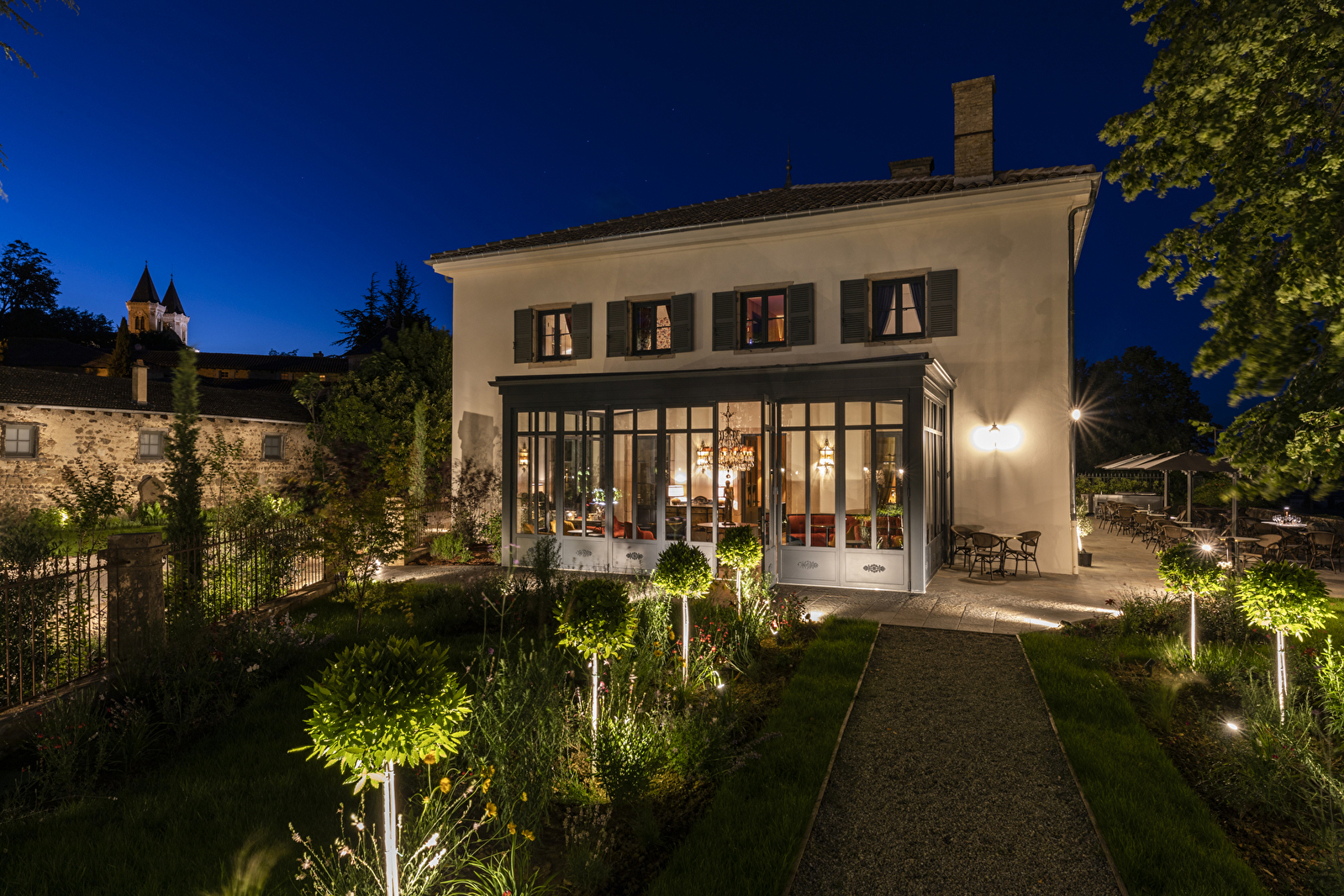 Au cœur d’un parc de 5 000 m², laissez-vous séduire par l’âme de Villa Alexandre et contemplez l’église aux deux clochers de Régnié-Durette, conçue par Pierre Bossan, architecte de la basilique de Fourvière à Lyon.