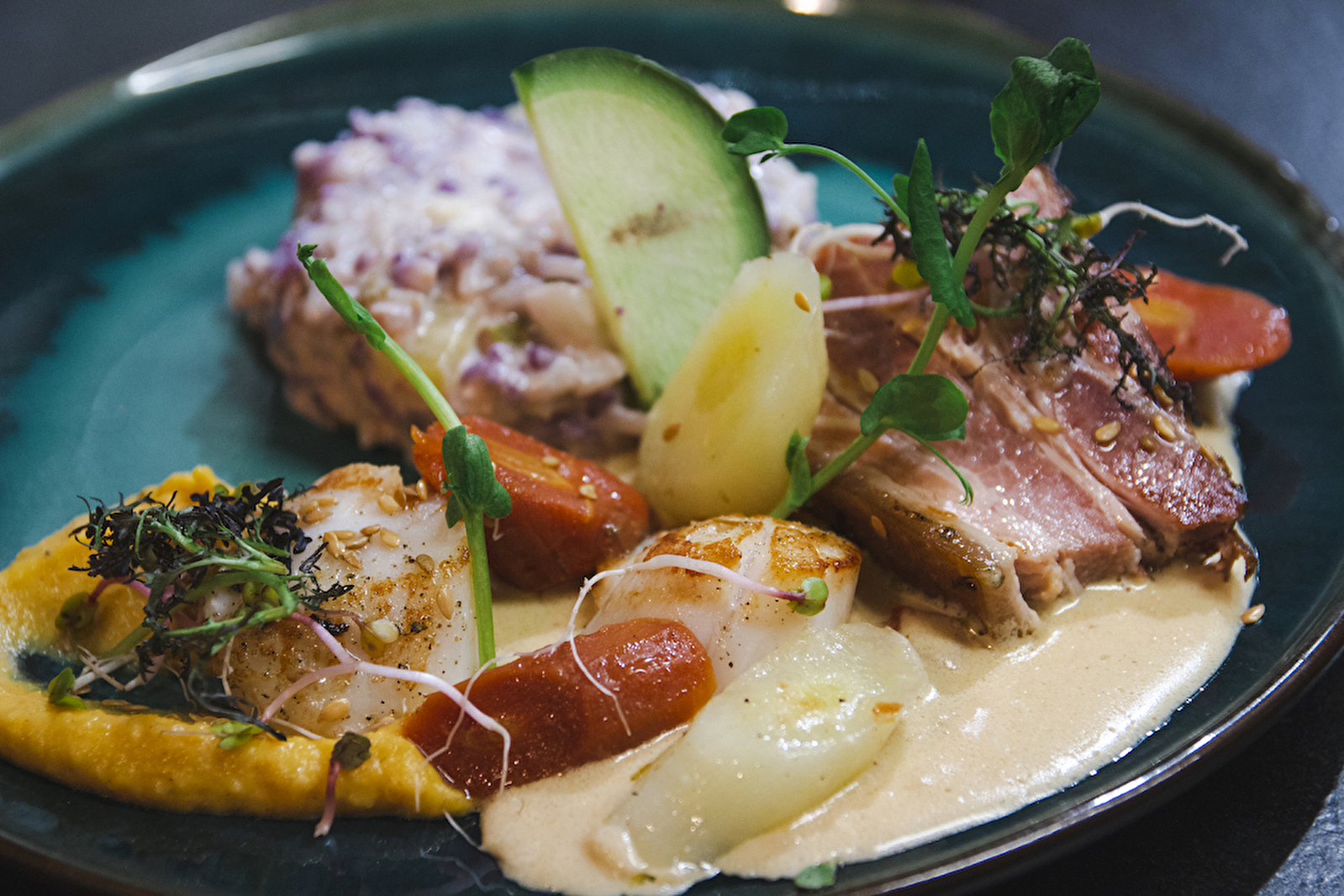 L'Alchimie d'une cuisine française traditionnelle mais éclectique, puisant dans la richesse des goûts de nos produits régionaux et les saveurs des épices et aromatiques. Un Chef passionné qui met de l’Amour dans sa cuisine, dans le respect du produit et du rythme des saisons.