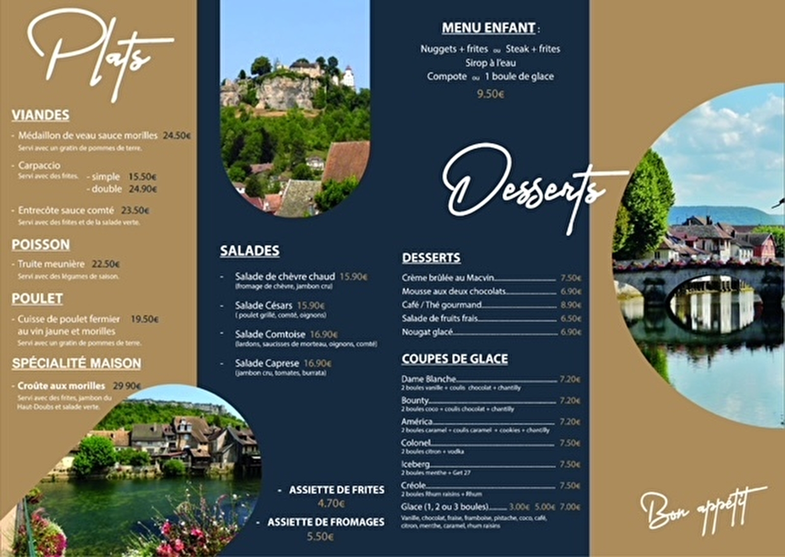 Situé au cœur de la ville, le Café des Arts à Ornans offre une atmosphère chaleureuse et accueillante. Il offre une cuisine mettant en avant les produits locaux et de saison : salades, croûte aux morilles, entrecôte sauce au Comté, truite meunière, cuisse de poulet au vin jaune et morilles...