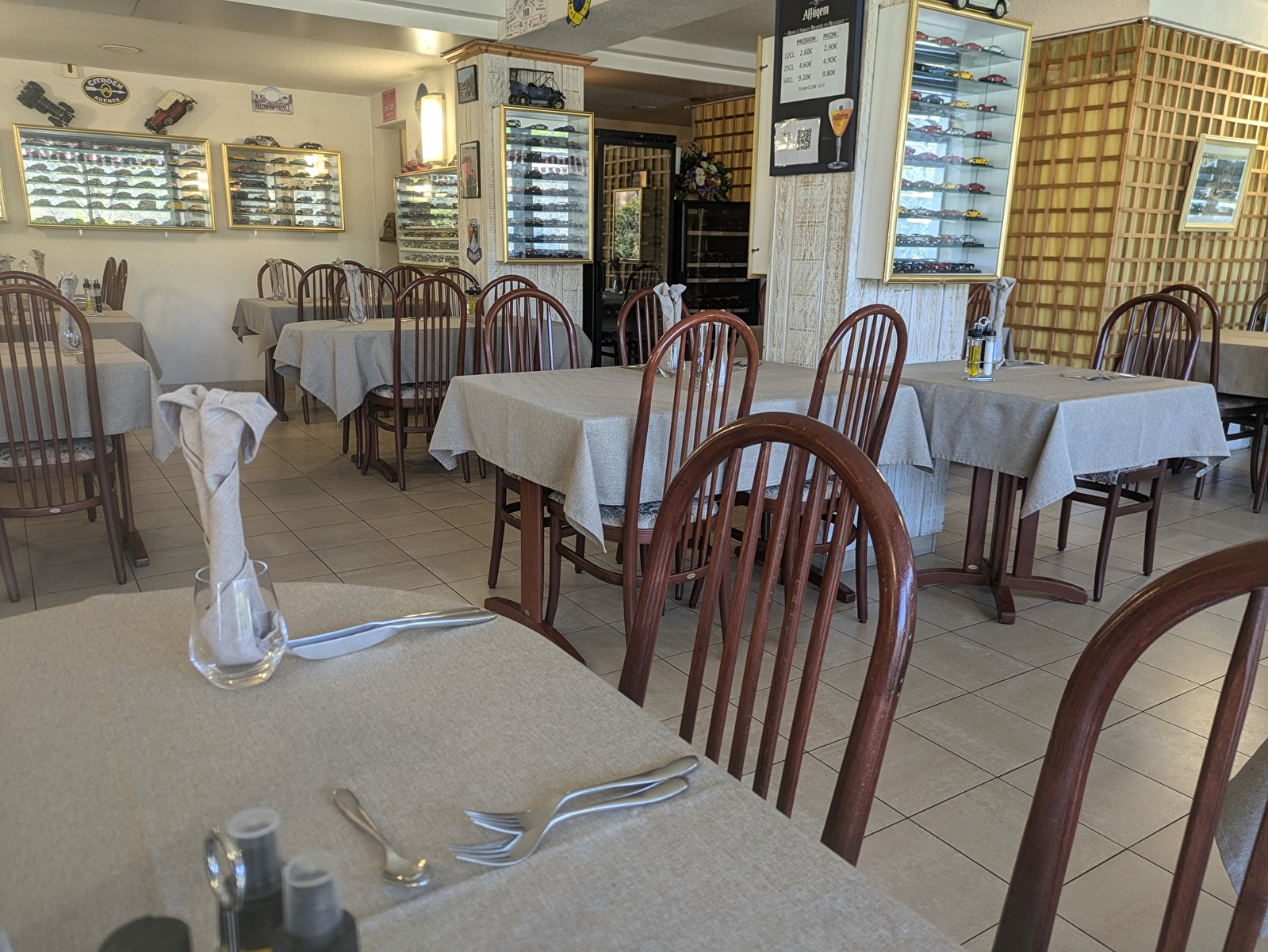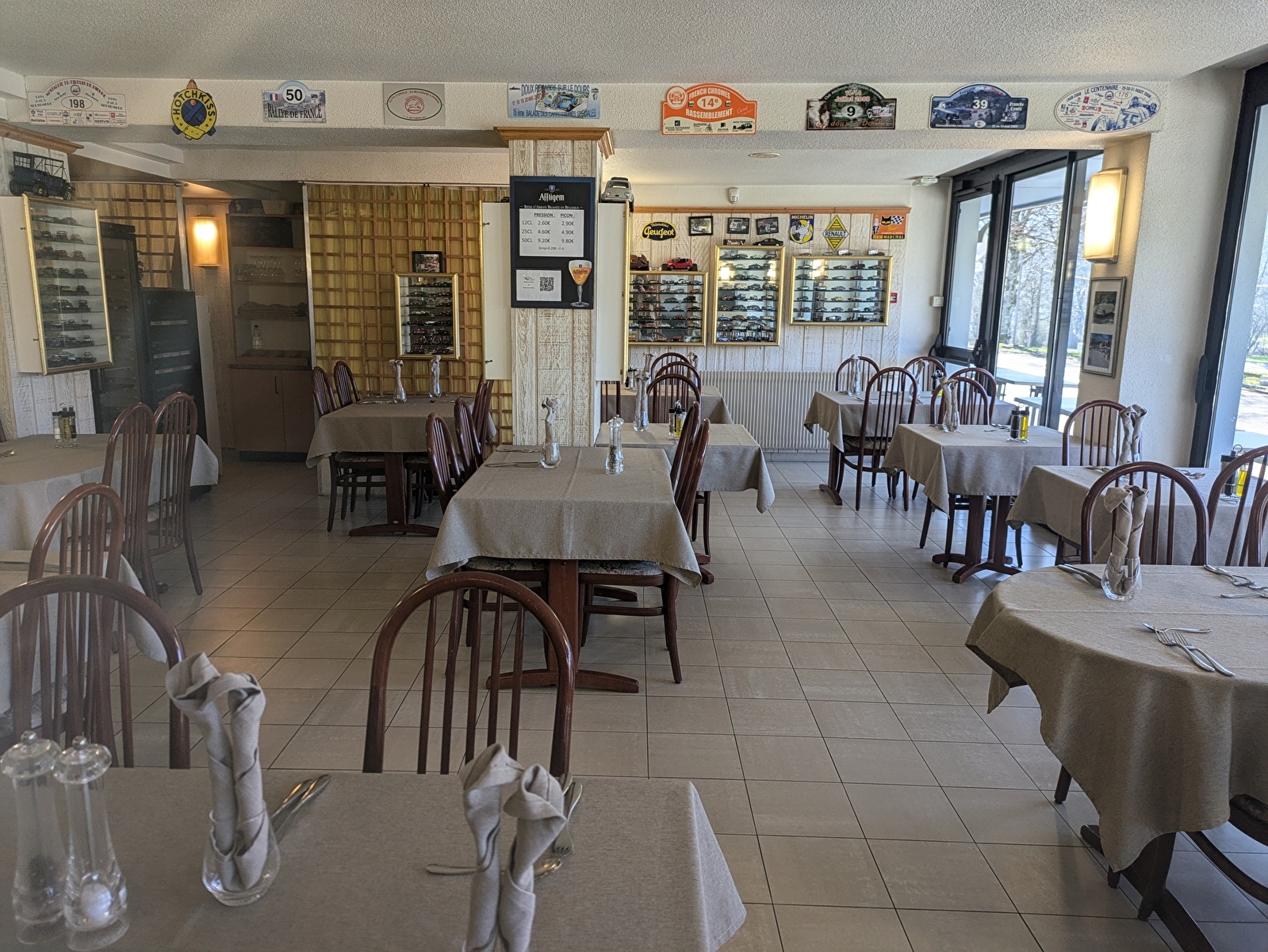 Aux beaux jours, profitez de la belle terrasse panoramique avec la vue sur le cadre agréable et reposant de la campagne environnante. En salle, vous serez surpris par la vaste collection de voitures et motos miniatures exposées dans les vitrines!