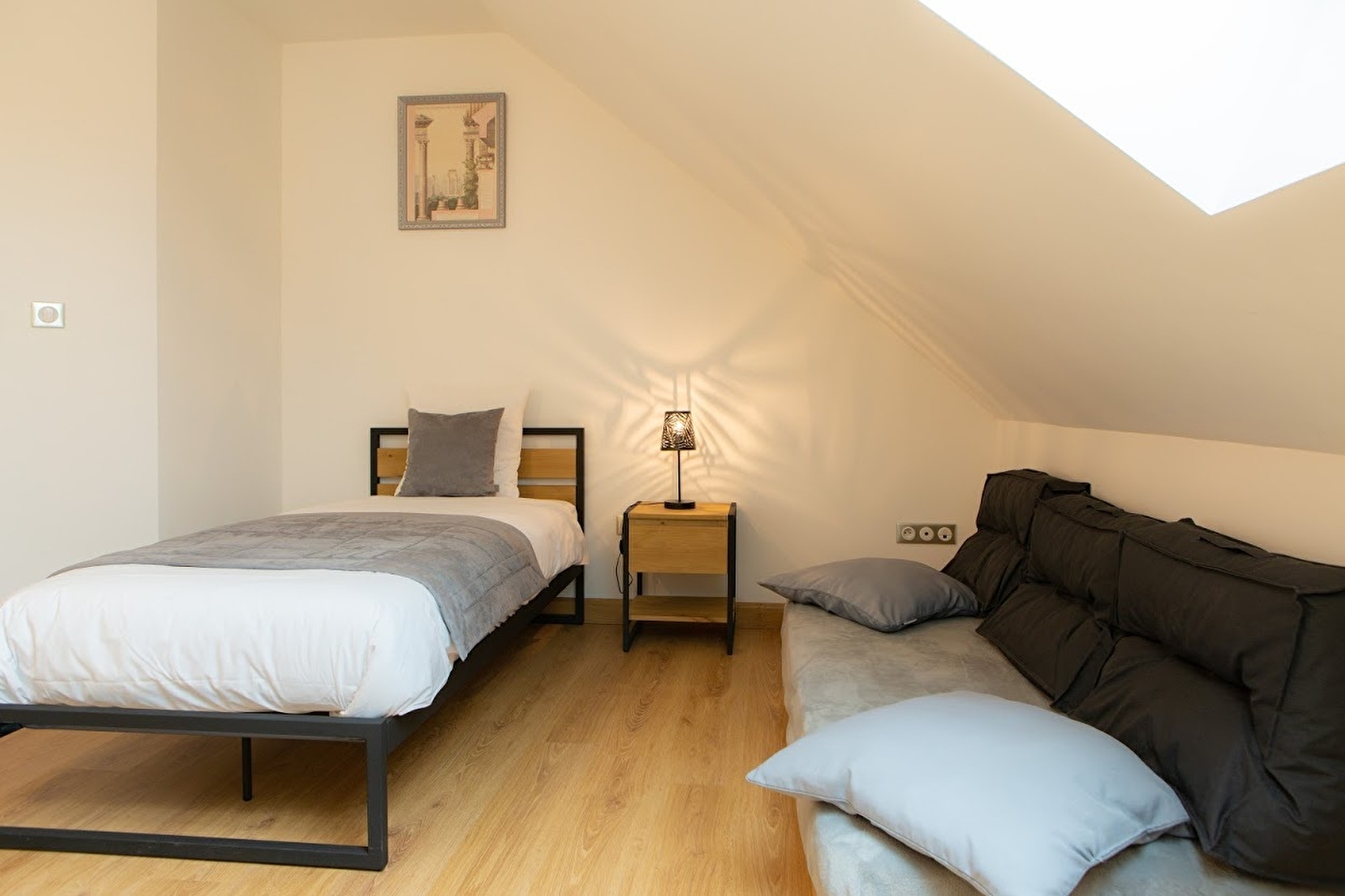 Bienvenue dans notre appart-hôtel, un véritable havre de paix où l’histoire de Besançon se mêle à une décoration chaleureuse et unique. Situé dans un cadre naturel et apaisant, cet espace de 75 m², idéal pour 1 à 4 personnes, vous offre un confort exceptionnel. La décoration, réalisée par des artistes locaux, vous plonge dans l’histoire de la capitale comtoise avec des éléments comme une colonne romaine, une horloge murale et des sculptures métalliques. Dès votre arrivée, vous serez accueillis chaleureusement et pourrez profiter de l’accès direct aux sentiers de randonnée et au parcours sportif du domaine. Parfait pour un séjour reposant, que ce soit pour le travail ou le plaisir, l’Orée du Bois vous promet une expérience inoubliable.