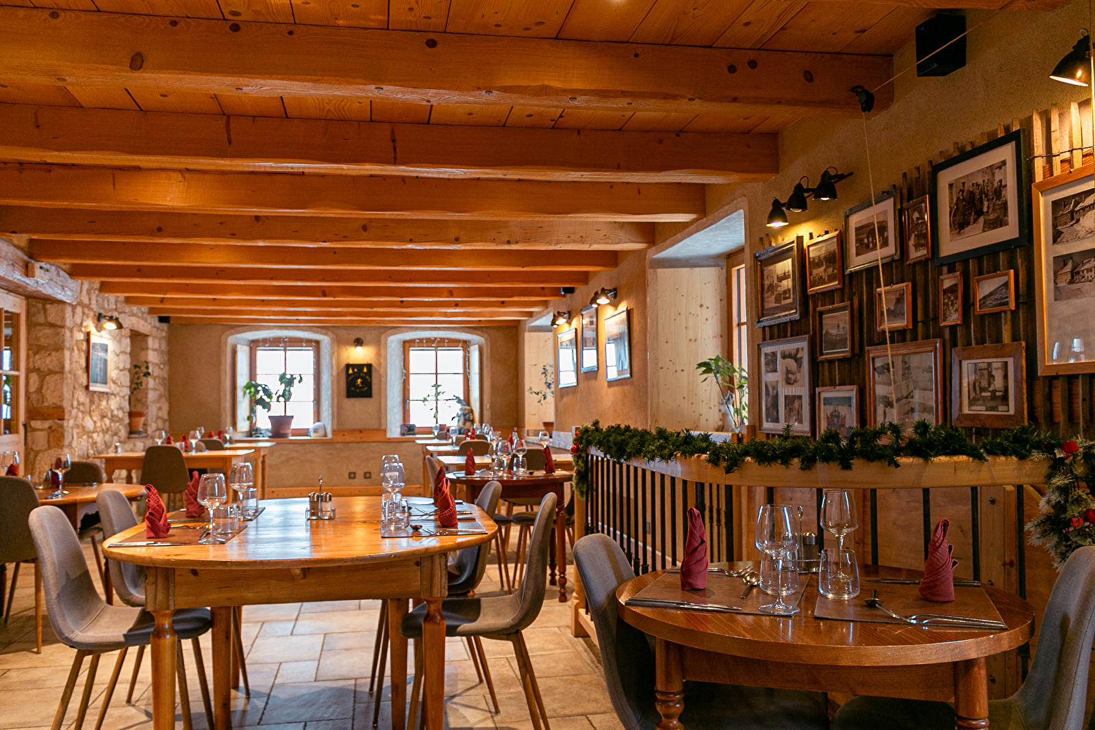 Choisir cet endroit, c'est l'assurance de passer un excellent moment dans un décor rustique, chaleureux et atypique. Amélie et James ont acheté cet établissement en 2018. Ils le rénovent en lui redonnant un coup de jeune tout en conservant les éléments témoignant de l'histoire de la maison comme l'ancien four à pain datant de plusieurs siècles ou encore le chauffe-plat en pierre. Les matériaux de la salle de restaurant ont été choisis avec soin. Ils font la part belle au bois et à la pierre qui s'harmonisent pour créer une ambiance calme et chaleureuse.